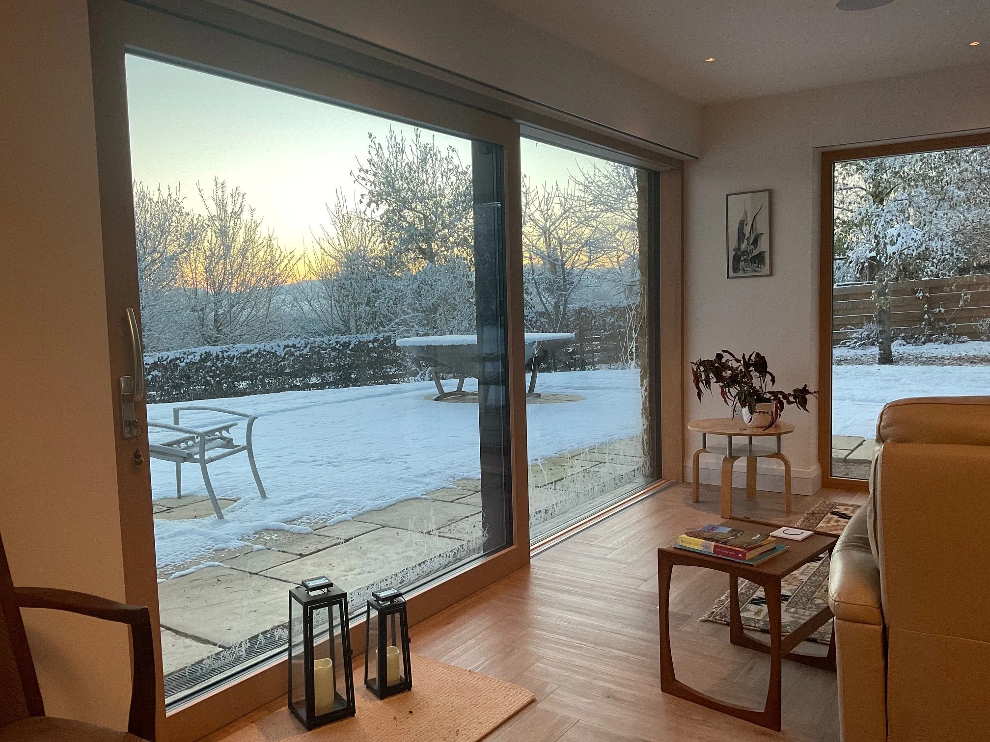 As well as the energy-efficient frame, Chris and Jenny incorporated an air source heat pump powering hot water and underfloor heating on both floors, heat recovery ventilation, triple glazing throughout, and 11kW PV panels supplying electricity on sunny days ready for battery storage. All combined with the benefits of an air-tight, highly insulated shell to make a comfortable, cheap to run, elegant home.