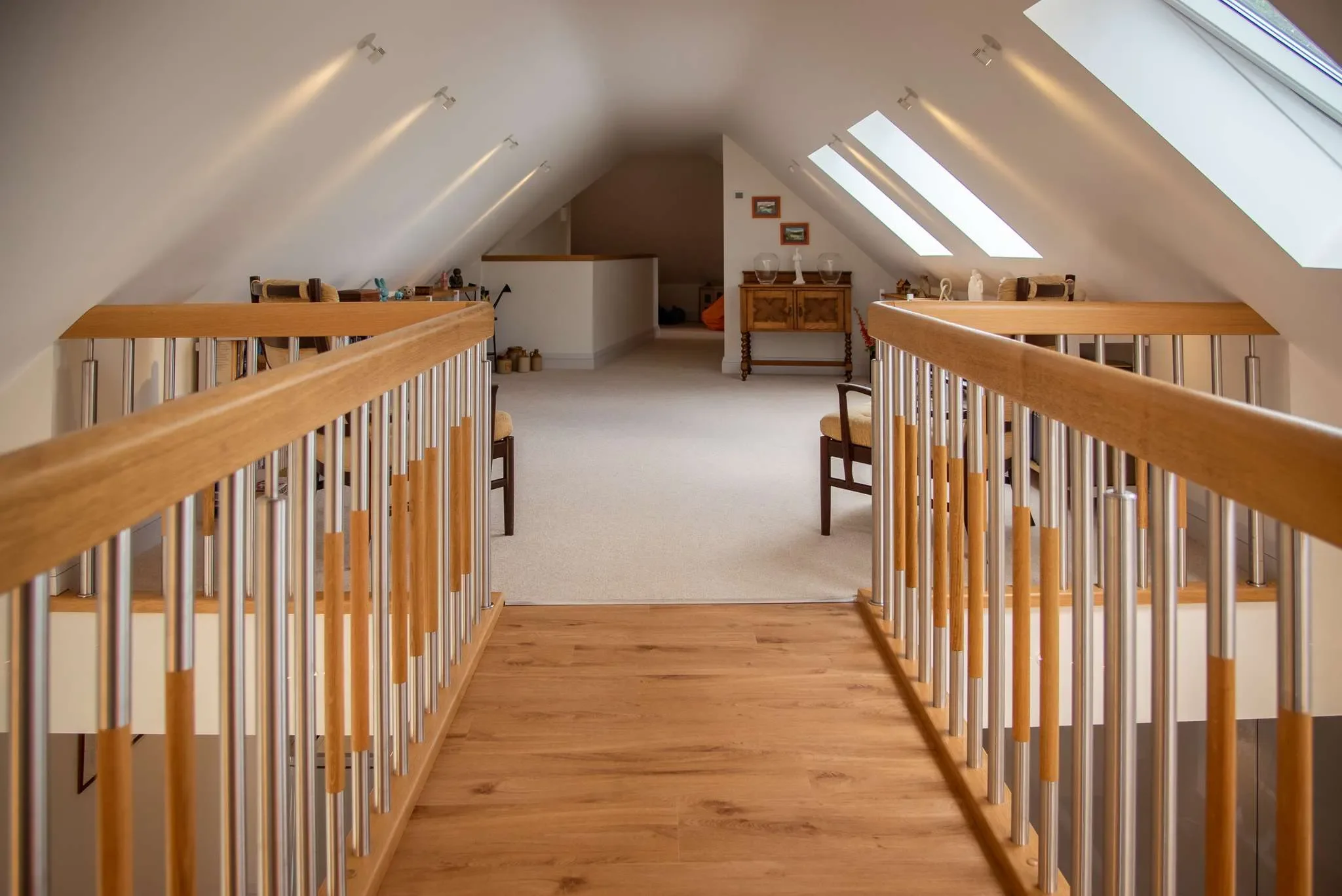 The staircase had proven a challenge for other frame designers, but we achieved it by cantilevering it and installing vertical timbers in the supporting wall to make it strong enough to support the weight.