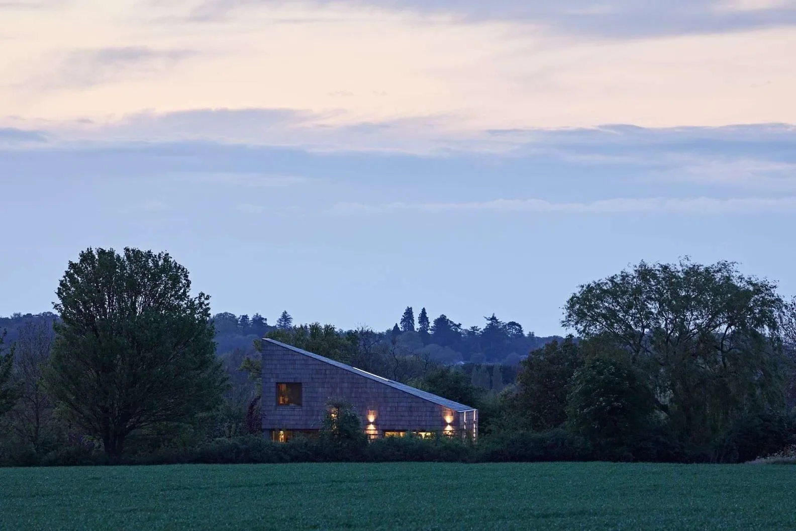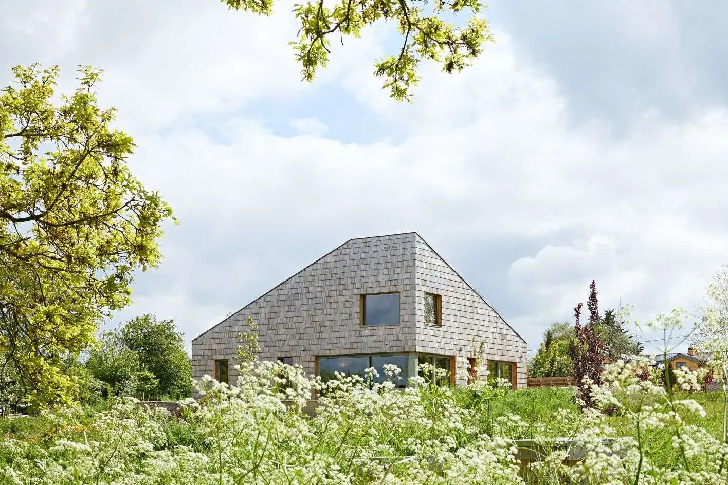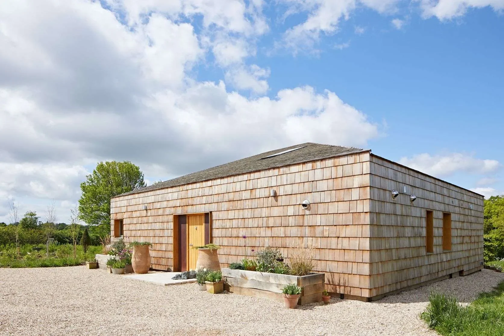 This home is a really striking addition on the Suffolk landscape, using 14,000 cedar shingles which wrap the roof and walls. To place these, 28,000 nails have been used, each nailed in place by hand by homeowner Suzanne Richardson and her brother John.