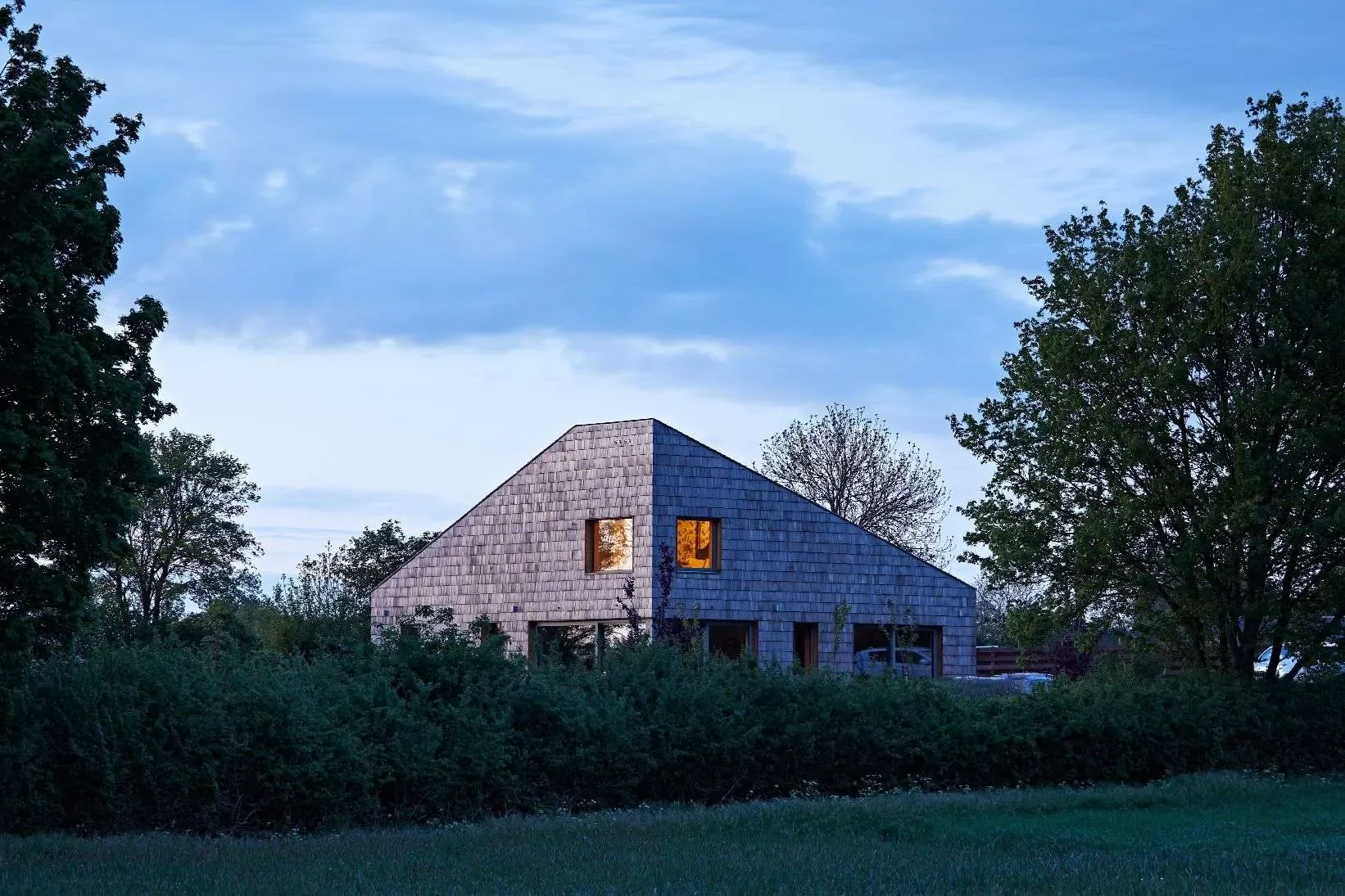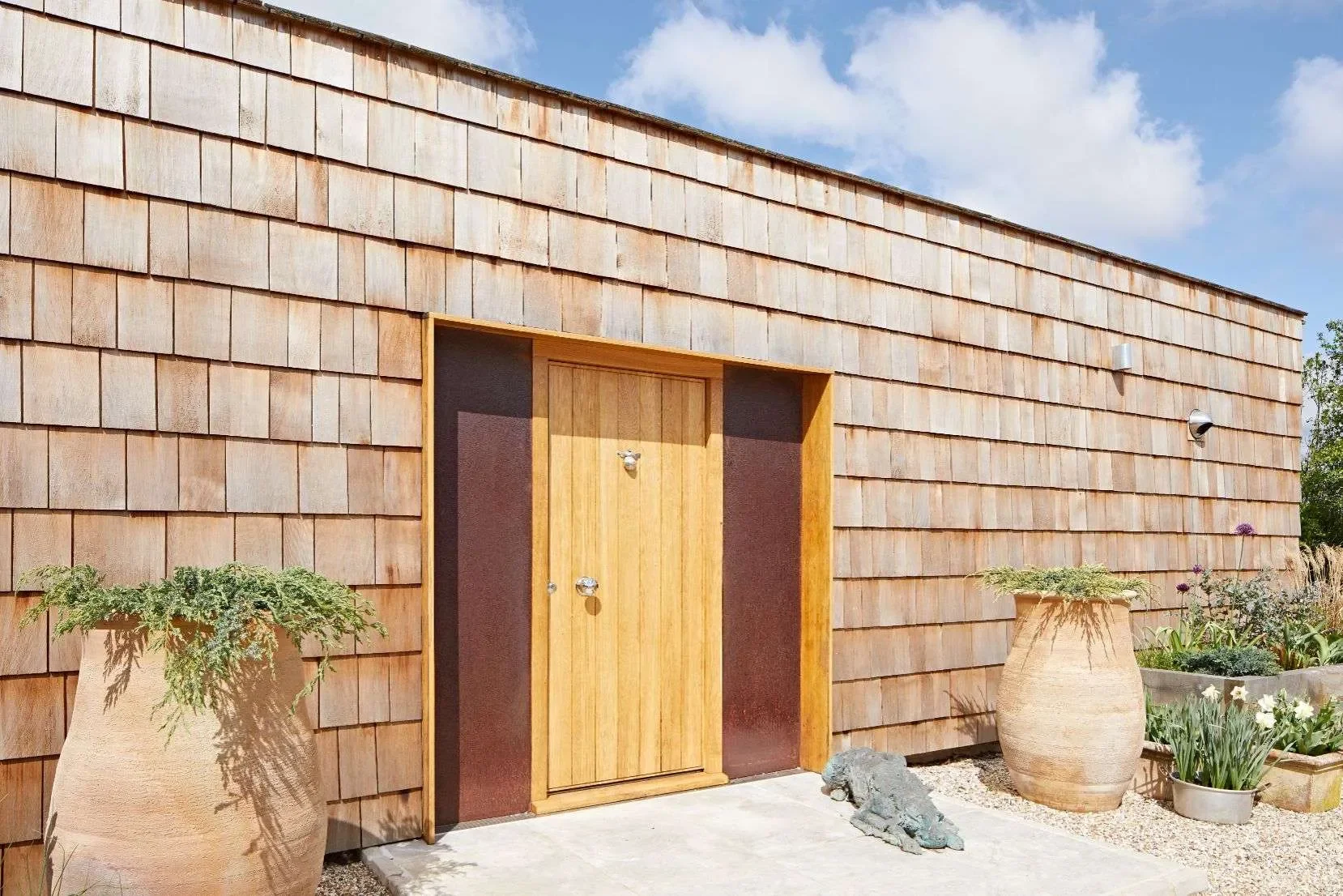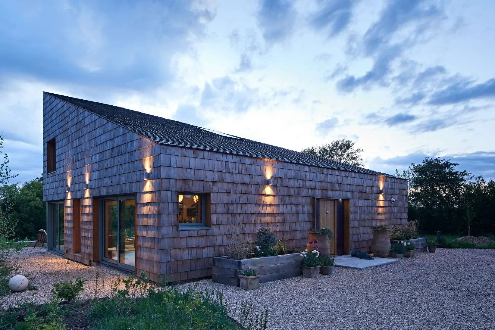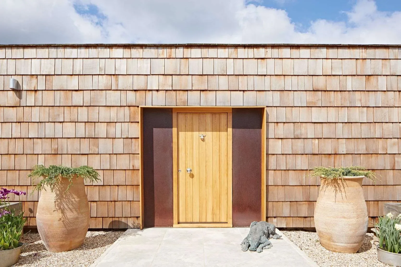 This home is a really striking addition on the Suffolk landscape, using 14,000 cedar shingles which wrap the roof and walls. To place these, 28,000 nails have been used, each nailed in place by hand by homeowner Suzanne Richardson and her brother John.
