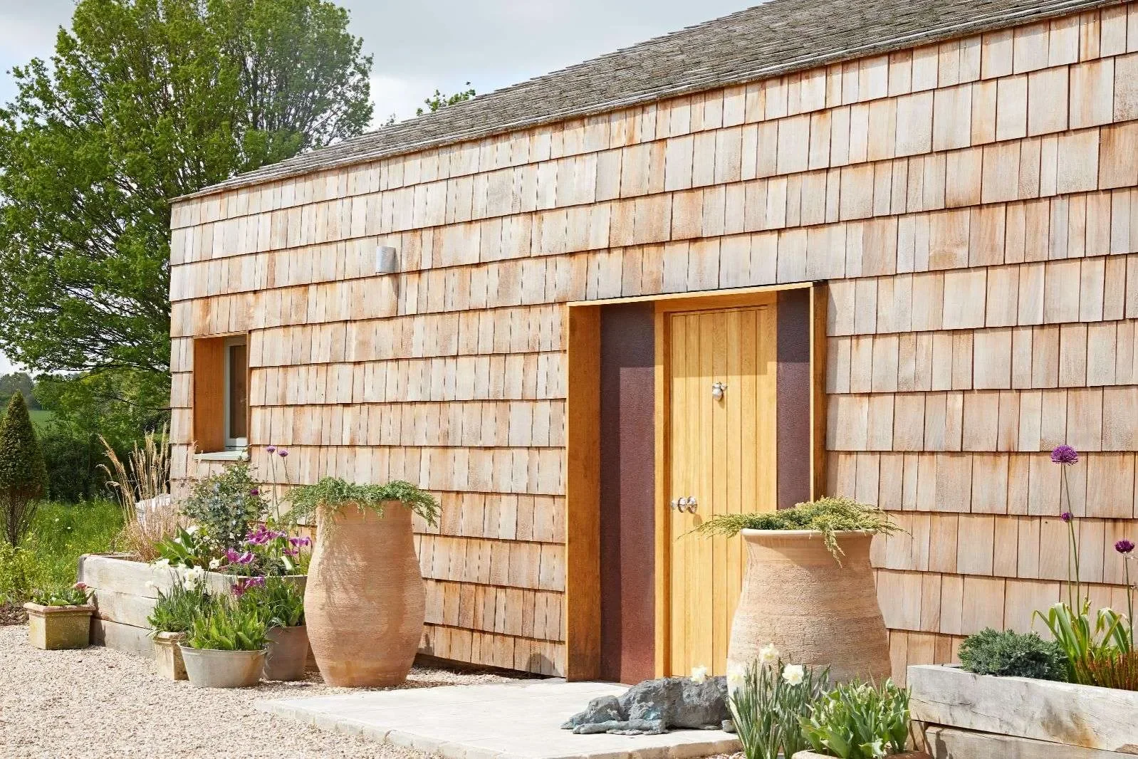 The cedar shingles that wrap the entire house were the perfect choice for lots of reasons. While they provided ease of installation for the self-builders who wanted to do a lot of the work themselves, they also have low embodied energy. Carbon sequestration captures and stores atmospheric carbon dioxide, which is one way this home plays its part in reducing global climate change.